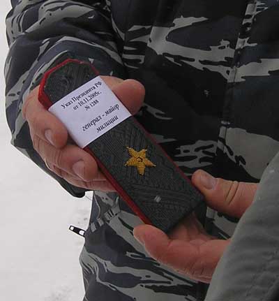 К досаде журналистов, момент вручения — почти скрытый за трибуной — оказался малозрелищным. Позже Владимир Третьяков показал свои новые погоны поближе.