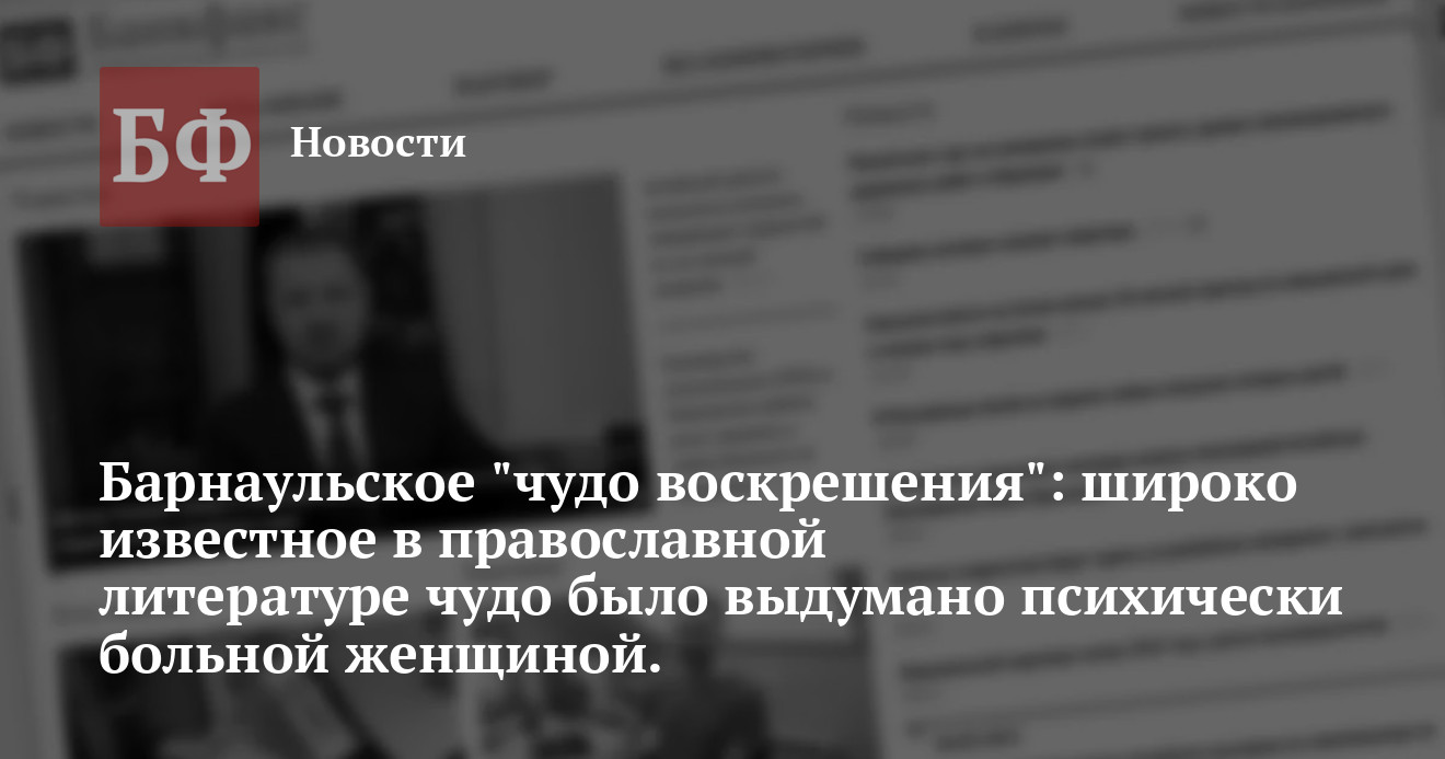 Что же до похабности заголовков, то тут я соглашусь, дело вкуса, но еще и, скажу вам по секрету, дело закона. "Барнаульское "чудо воскрешения": широко известное в православной литературе чудо было выдумано психически больной женщиной." - на мой взгляд, верх непрофессионализма и опять таки привычка все решать за других, так как нет пока стопроцентных доказательств ни психической болезни женщины, ни