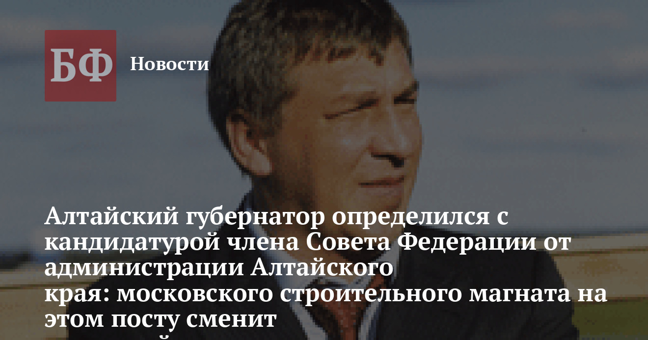 администрацию Алтайского края в Совете Федерации будет Игорь