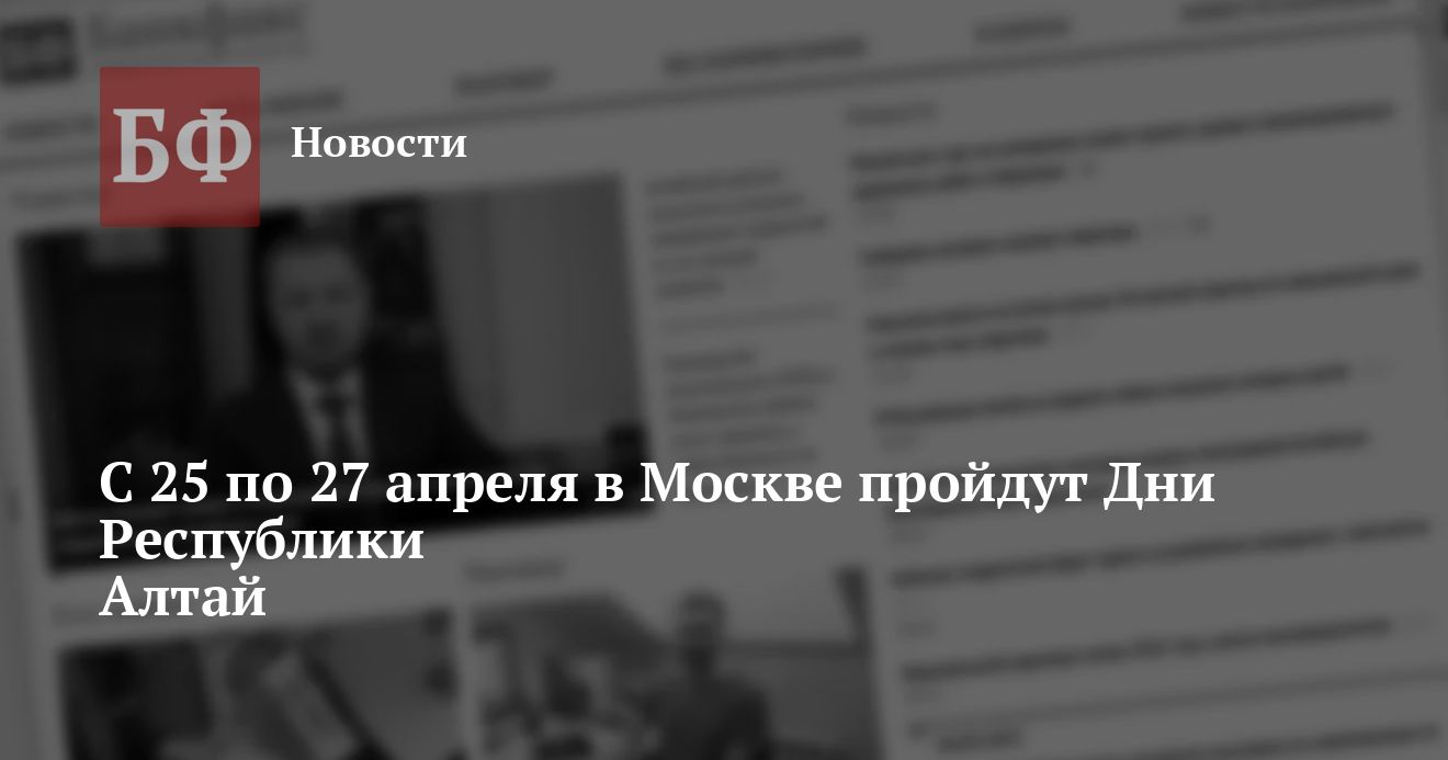 С 25 по 27 апреля в Москве пройдут Дни Республики Алтай. Об этом РИА Новости сообщили в городской администрации, сообщает РИА
