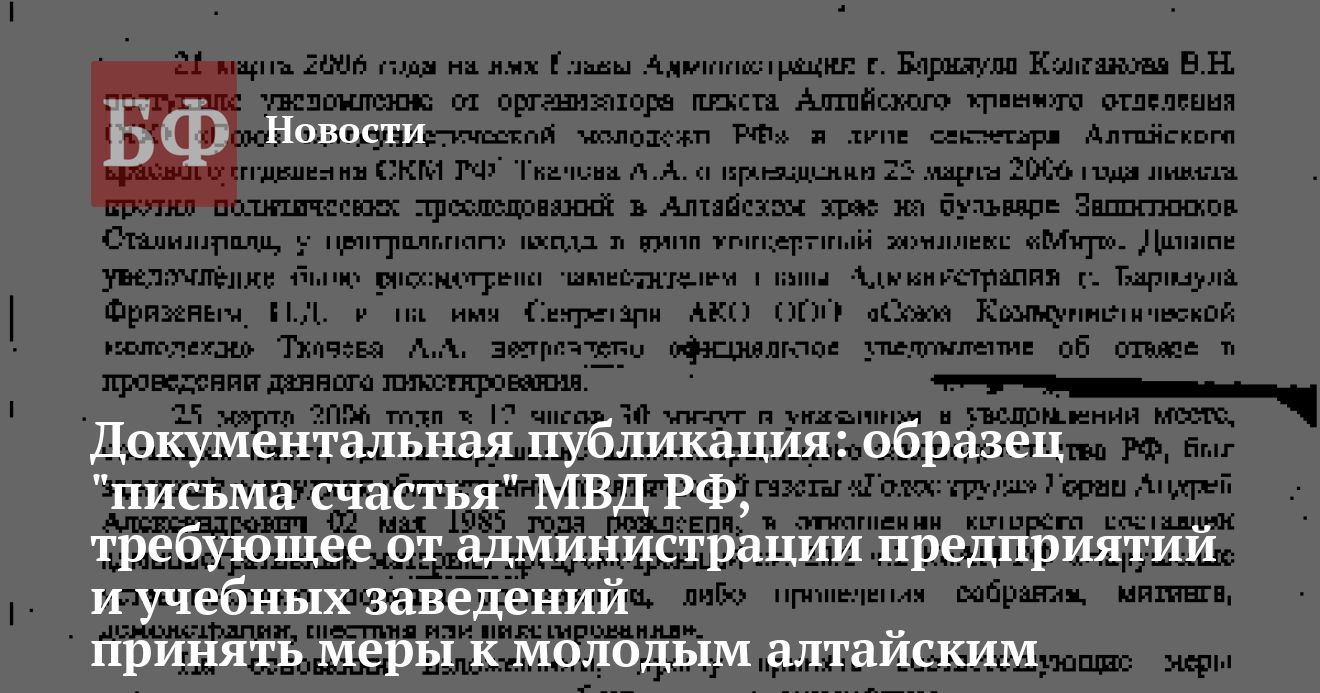 Документальная публикация: образец «письма счастья» МВД РФ,