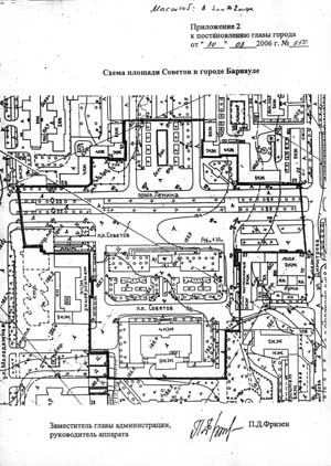 Как рассказал Владимир Небальзин, о методах установления границ на суде рассказывал главный архитектор Барнаула Сергей Боженко. Как выяснилось, площадь Советов — единственная площадь Барнаула, которая после возникновения скандала вокруг постановления губернатора теперь имеет документально оформленные границы. Как отметил в этой связи г-н Боженко, ранее ему никогда не приходилось очерчивать границы площадей, а посему он вынужден был в суде сослаться на «некое творчество процесса».