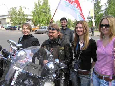 Колоритные фигуры барнаульских байкеров стали центром внимания участвующих в пикете девушек.