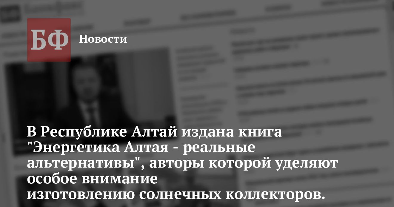 книги «Энергетика Алтая — реальные альтернативы». Как сообщает