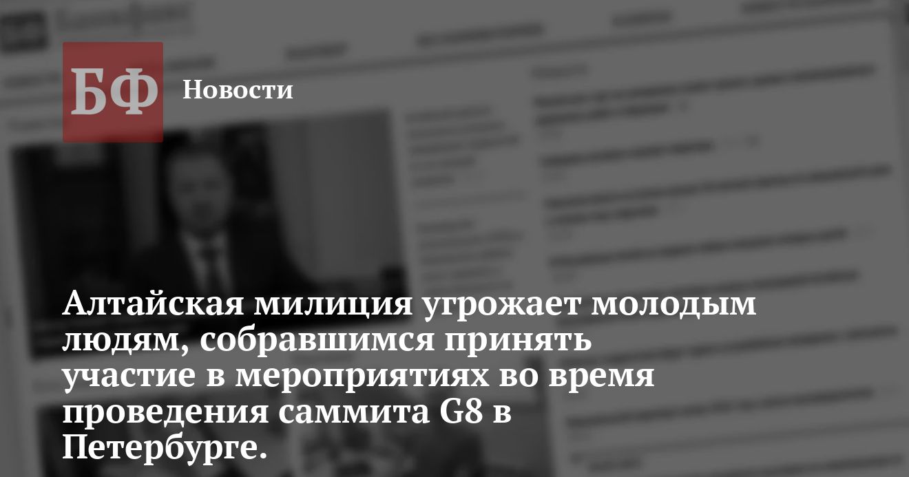 сотрудники оперативного отдела. После проверки началась «профилактическая беседа», в ходе которой милиционеры интересовались, не собирается ли Наталья на саммит «большой восьмерки», не состоит ли она в политических организациях, осознает ли она, как опасна может оказаться для нее поездка и сколько провокаций ждут ее на пути в Питер и на самом РСФ. На все эти вопросы девушка ответила, что она – свободный человек, совершеннолетний, не