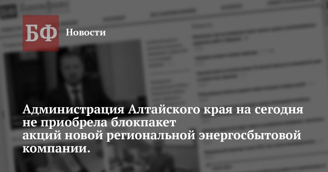 акций ОАО «Алтайэнергосбыт», созданного на днях в рамках