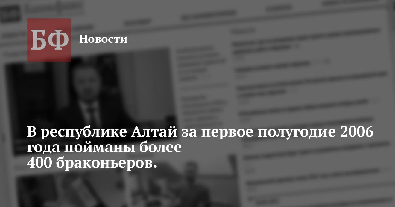 Более 400 браконьеров были задержаны в Республике Алтай за первое полугодие 2006 года. Об этом сообщает ИА REGNUM со ссылкой