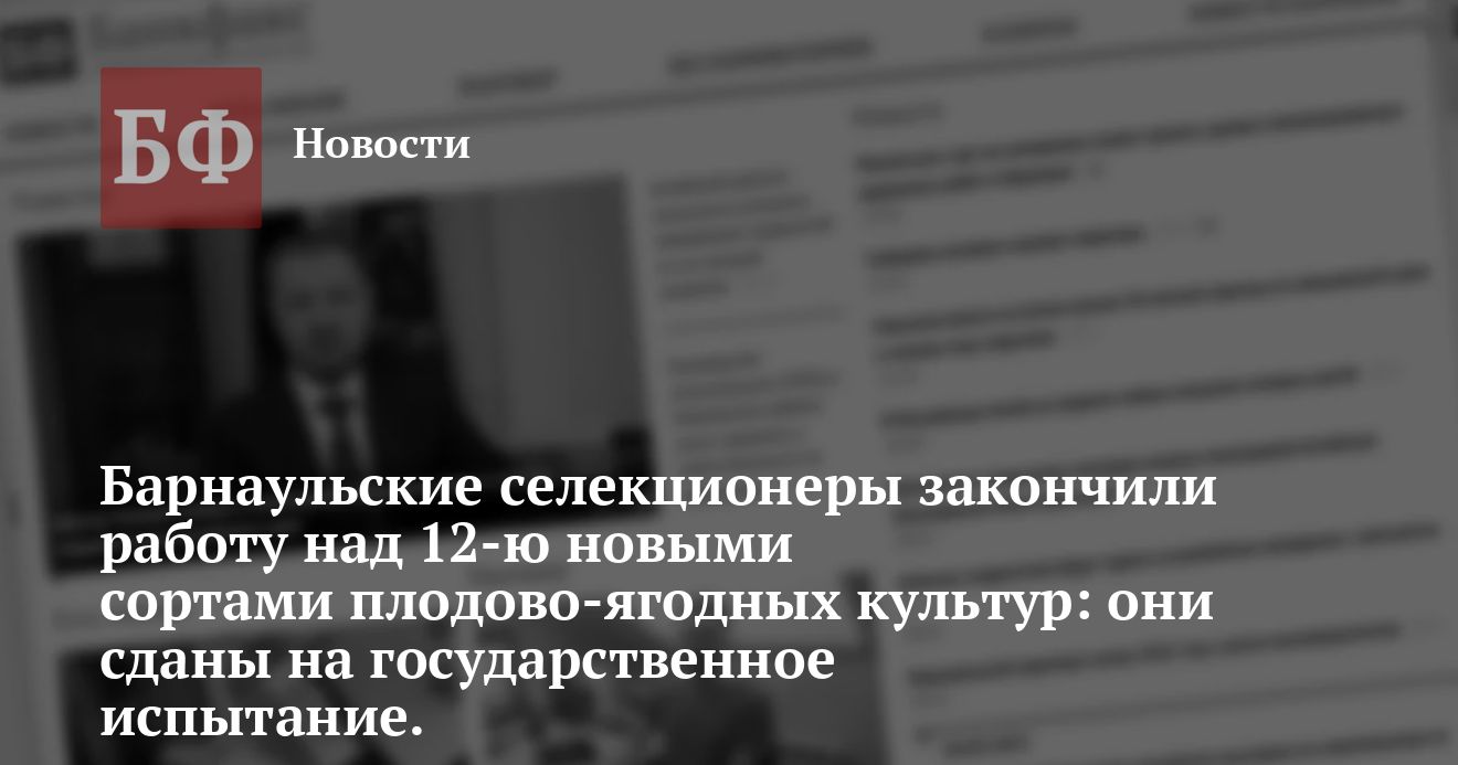 сортоиспытание 12 сортов, в том числе: две яблони (Алтайская