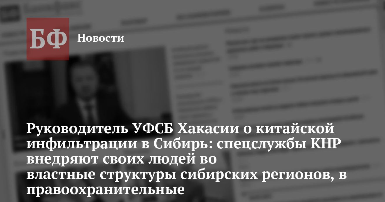 Руководитель УФСБ Хакасии о китайской инфильтрации в Сибирь: спецслужбы КНР внедряют своих людей во властные структуры сибирских регионов, в правоохранительные органы, хотят влиять на политику заксобраний.