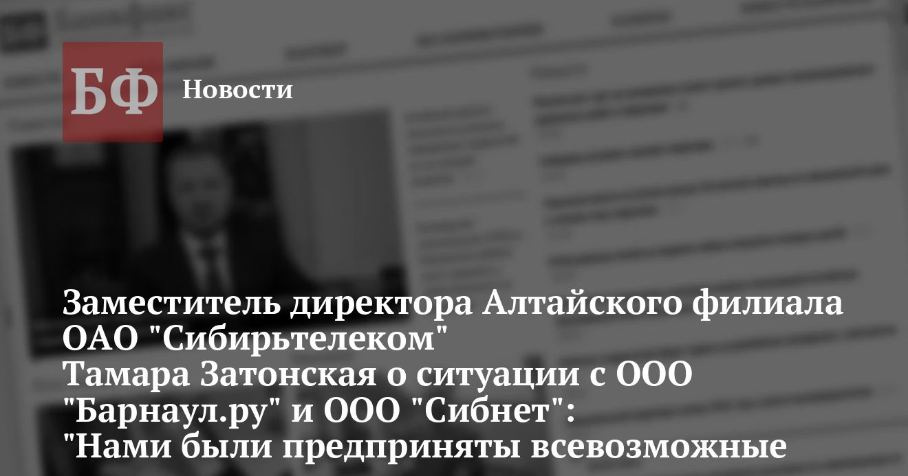 филиала ОАО «Сибирьтелеком» Тамары Затонской по поводу возникшей