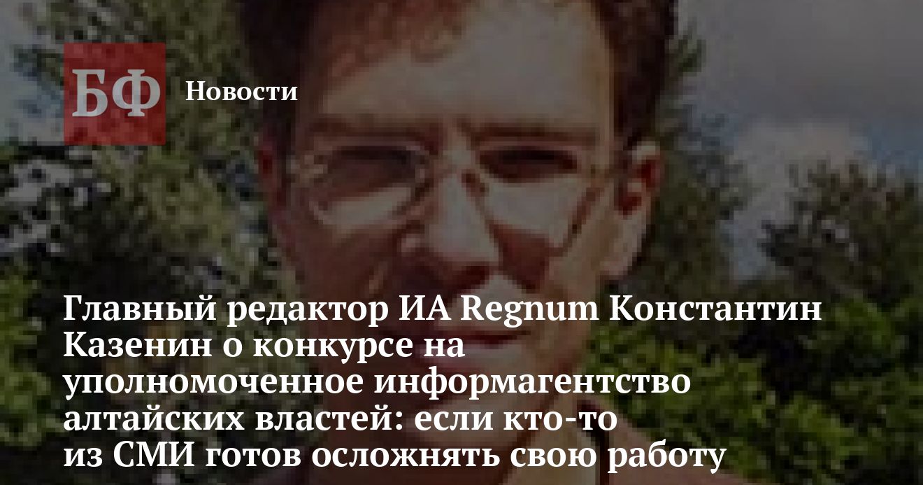 Главный редактор ИА Regnum Константин Казенин о конкурсе на уполномоченное информагентство алтайских властей: если кто-то
