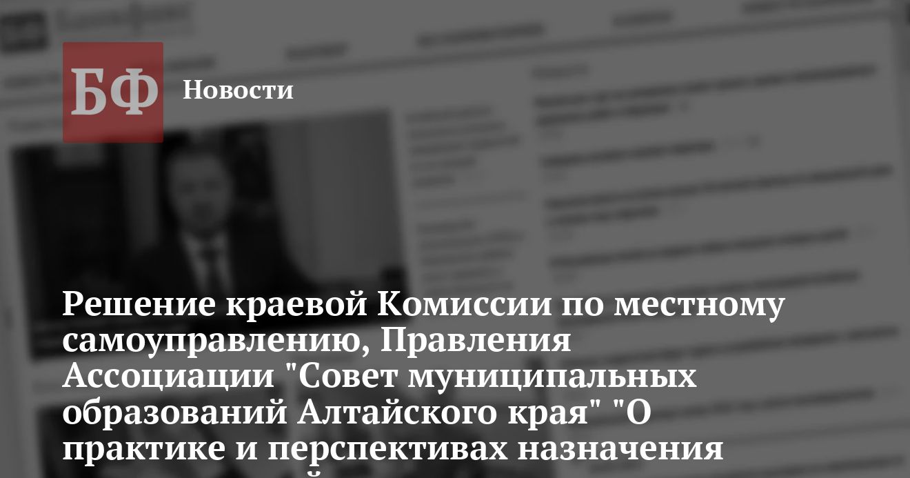 Заслушав и обсудив информацию начальника управления администрации Алтайского края по взаимодействию с органами местного самоуправления и организационной работе Сергея Химочки и председателя Правления Ассоциации «Совет муниципальных образований Алтайского края» Павла Ефремова, краевая комиссия по местному самоуправлению и Правление Ассоциации «Совет муниципальных образований АК» решили: