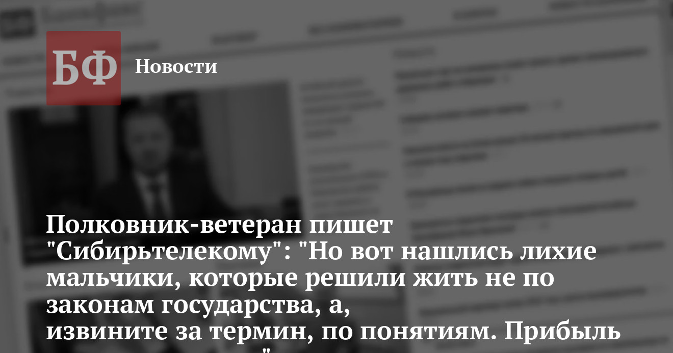 Полковник-ветеран пишет «Сибирьтелекому»: «Но вот нашлись лихие мальчики, которые решили жить не по законам государства, а, извините за термин, по понятиям. Прибыль зашторила глаза».