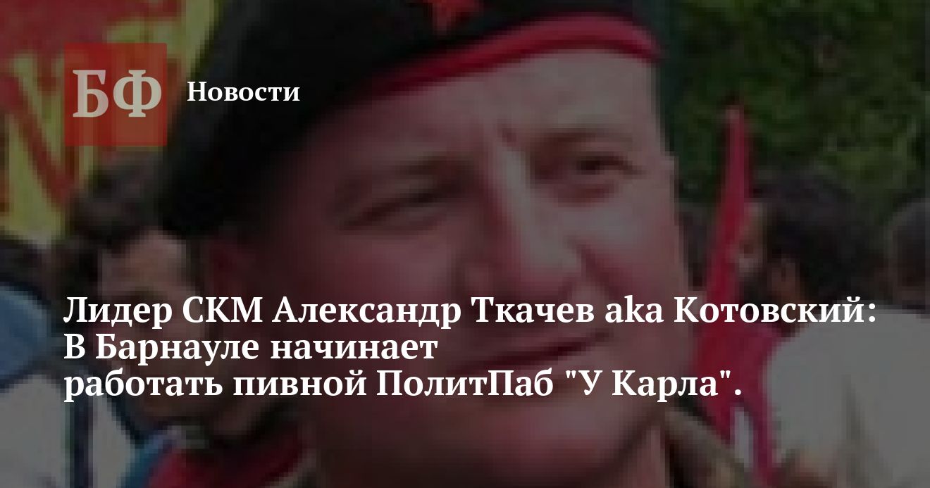 Лидер СКМ Александр Ткачев aka Котовский: В Барнауле начинает работать пивной ПолитПаб «У Карла».