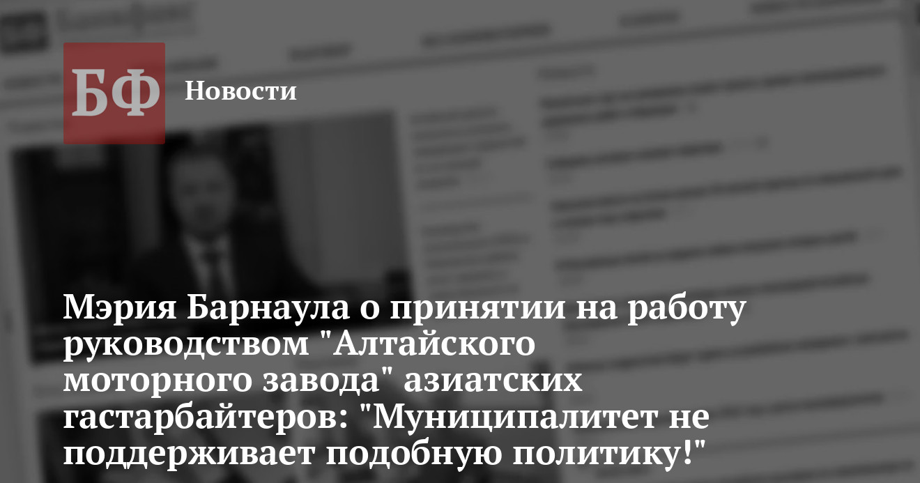 Мэрия Барнаула о принятии на работу руководством «Алтайского моторного завода» азиатских гастарбайтеров: «Муниципалитет не поддерживает подобную политику!»