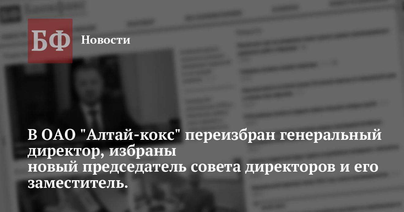 директоров ОАО «Алтай-кокс» приняты решения об избрании