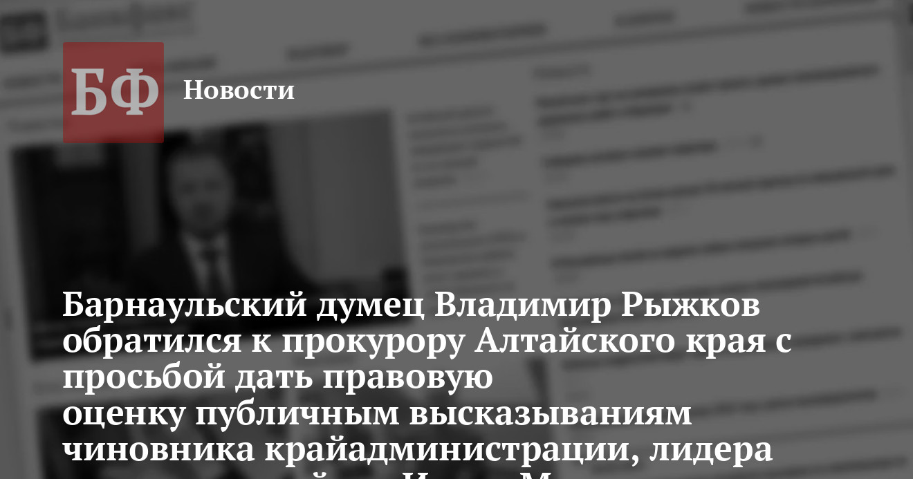 обратился к прокурору Алтайского края Александру Кочергину с просьбой дать правовую оценку публичным высказываниям чиновника