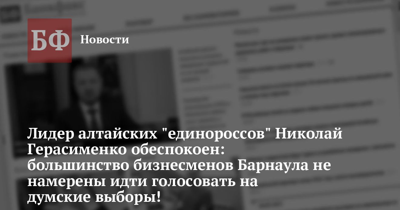 среднего и крупного бизнеса Барнаула «не собираются участвовать в парламентских выборах». Полученные результаты соцопроса на тот