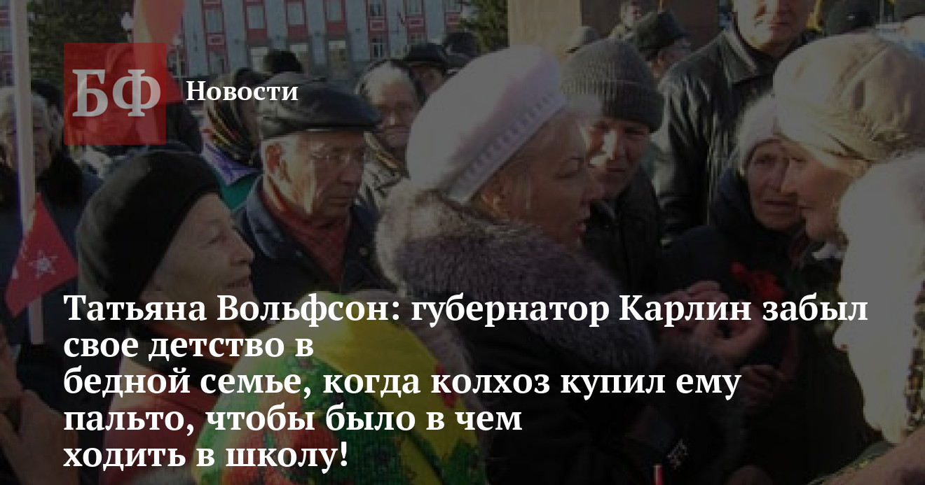 Татьяна Вольфсон: губернатор Карлин забыл свое детство в бедной семье,когда колхоз купил ему пальто,чтобы было в чем