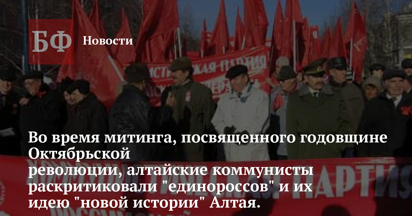 Спикер Алтайского крайсовета Александр Назарчук, выступая на митинге, отметил: «Сегодня много говорят о новой истории… Я считаю, что история у нас одна, и я верю в то, что идеалы социализма будут верны и будут в памяти тех, кто сегодня живет и тех, кто придет нам на смену!»