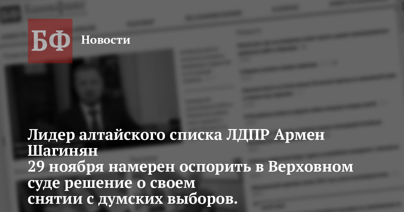 Лидер алтайского списка ЛДПР Армен Шагинян 29 ноября намерен оспорить в Верховном суде решение о своем снятии с думских выборов.