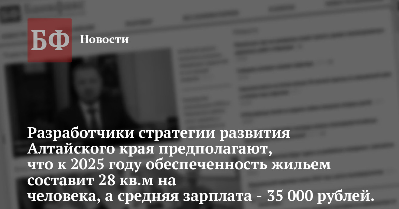 Обеспеченность жильем на одного человека вырастет до 28 кв. м. Сейчас обеспеченность жильем в крае сохраняется на уровне 20 кв.м. на человека. Таким образом, разработчики стратегии планируют за 18 лет увеличить этот показатель на 8 кв.м.