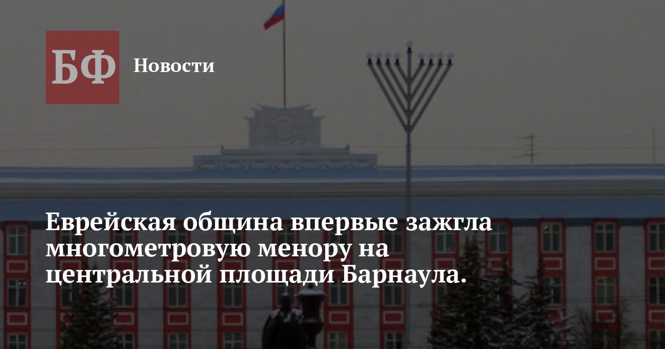 В честь этого праздника на центральной площади краевого центра был установлен восьмисвечник, на котором в каждый из восьми дней празднования Хануки будет зажигаться по одному огоньку, — сообщает jewish.ru со ссылкой на главного раввина Алтайского края Исраэля Ноаха Каменецкого. В других сообщениях многометровое сооружение (менора), впрочем, именуется девятисвечником, а сопровождающие сообщения фотографии демонстрируют наличие семи свечей. Для проведения церемонии собралось около сотни членов еврейской общины и представители местных властей.