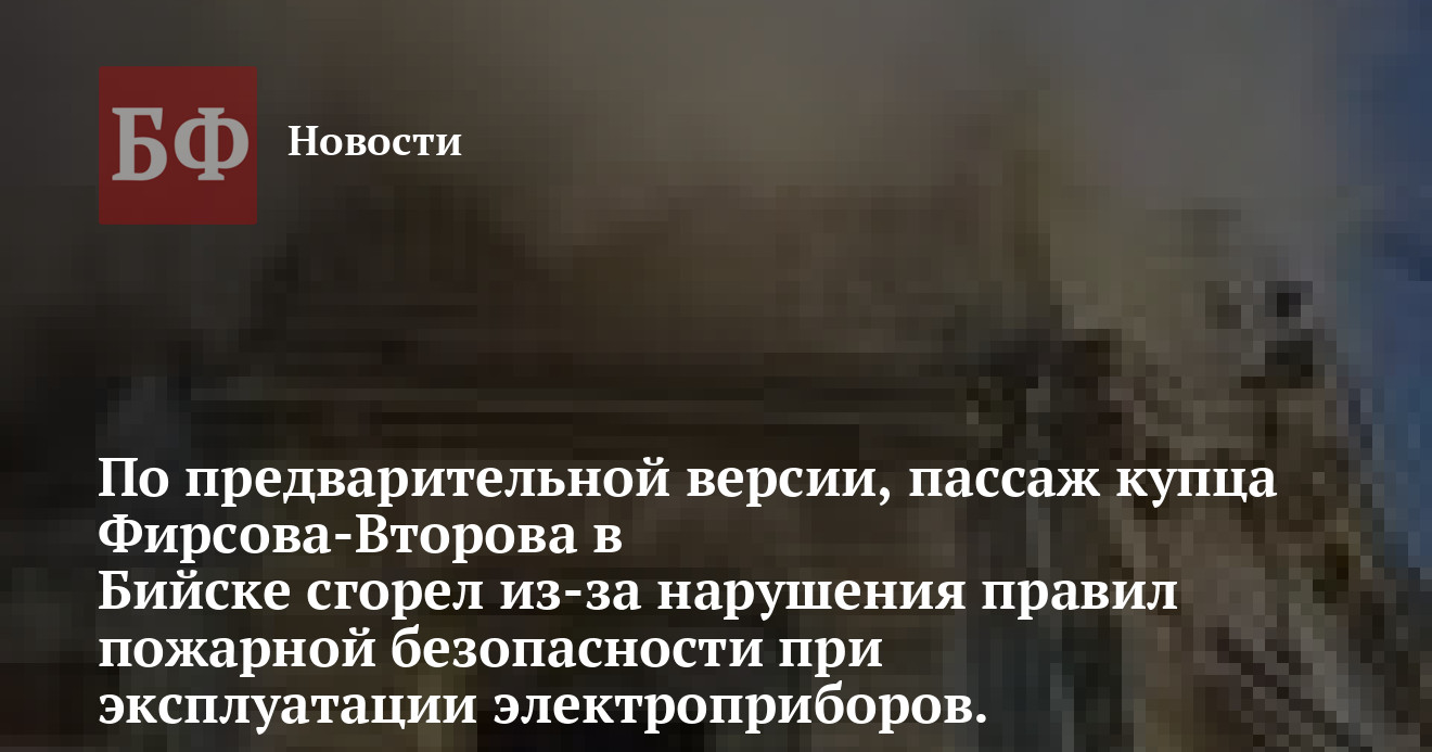 По предварительной версии, пассаж купца Фирсова-Второва в Бийске сгорел из-за нарушения правил пожарной безопасности при