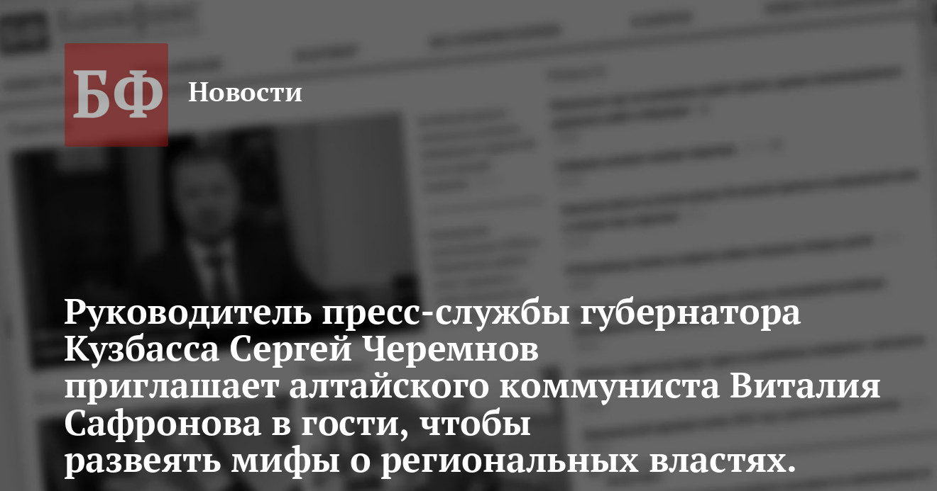 губернатора Кемеровской области Сергей Черемнов приглашает в гости руководителя «левой» фракции АКСНД «За наш Алтай» Виталия