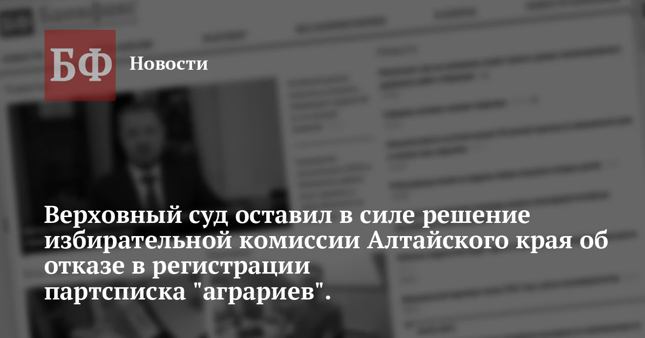 образом, алтайские «аграрии» не будут участвовать в выборах в краевое Заксобрание по партийным спискам, а их лидер — спикер