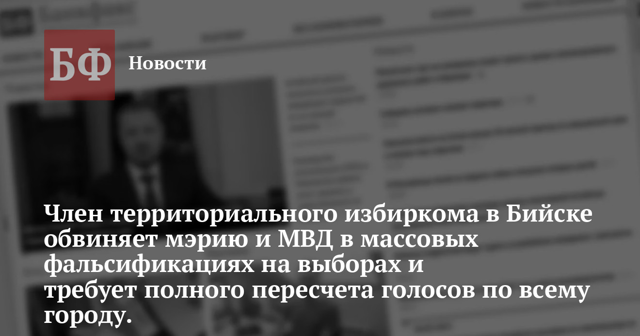 Прошу принять меры в связи с вмешательством в работу участковый избирательной комиссий Приобского района и Приобской территориальной избирательной комиссии со стороны администрации гор. Бийска, а именно: