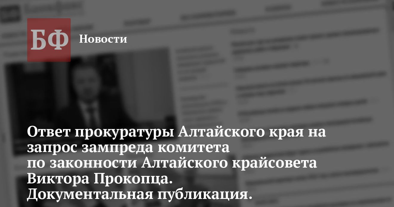 ПРОКУРАТУРА АЛТАЙСКОГО КРАЯ 656059, г. Барнаул, ул. Партизанская, 71