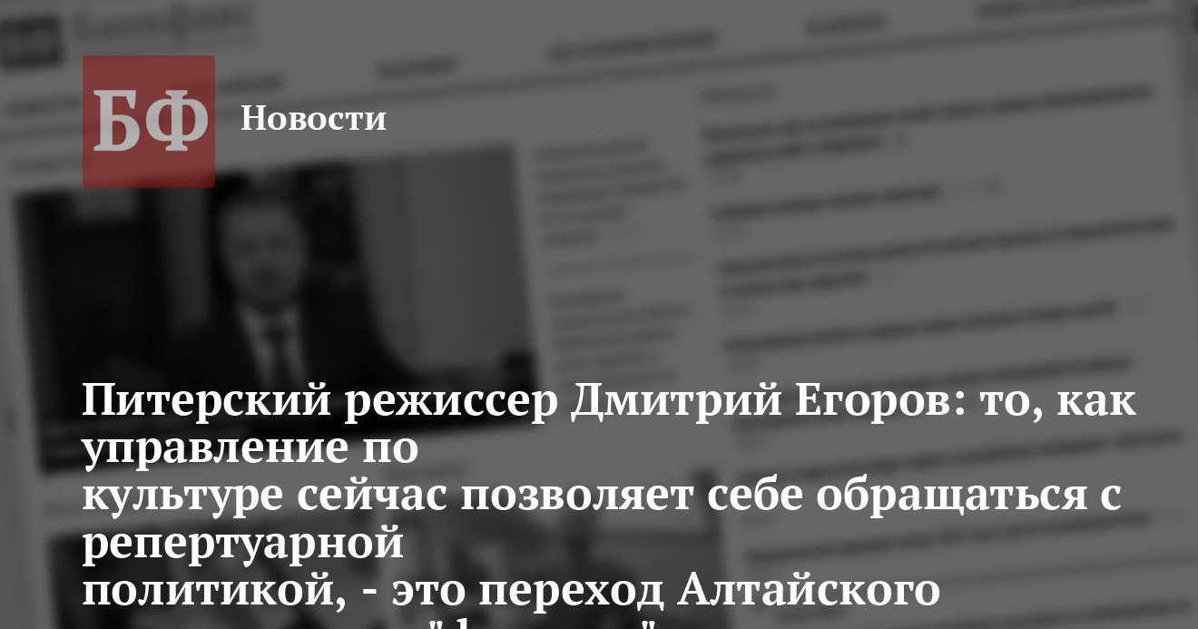 «частное мнение режиссера Дмитрия Егорова» об этой ситуации, о театре и нашем времени.