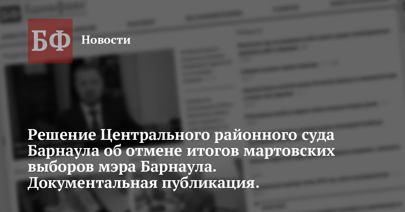 По 249 участкам в списки избирателей внесено 510 319 человек, одна четвертая от числа избирателей муниципального образования г.Барнаул составляет — 127 580 человек. На 83 участках, результаты голосования по которым суд признает недействительными в списки избирателей внесено 168 245 избирателей, что превышает одну четвертую часть от общего числа избирателей, внесенных в списки и свидетельствует о наличии правовых оснований для признания выборов главы муниципального образования г. Барнаул недействительными.
