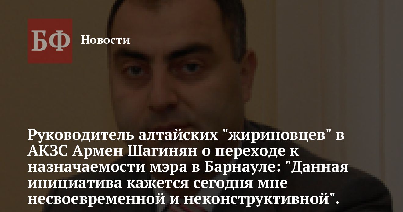 Руководитель алтайских «жириновцев» в АКЗС Армен Шагинян о переходе к назначаемости мэра в Барнауле: «Данная инициатива кажется сегодня мне