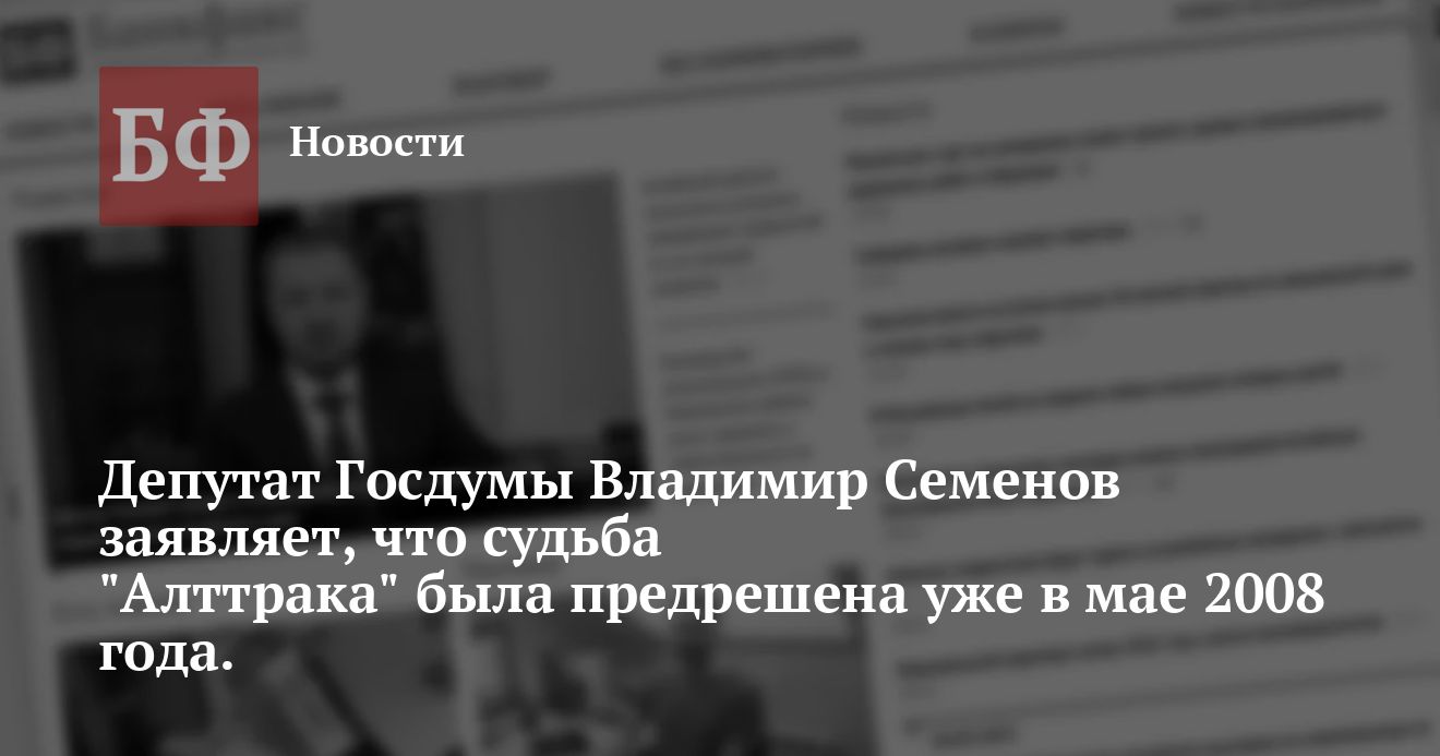 «Прошедшие торги по продаже активов «Алтайского тракторного завода» являются логическим финалом существования предприятия. О том, что участь «Алттрака» решена, стало ясно еще в мае, когда на прошедшем в конце мая в Госдуме «правительственном часе» с участием заместителя министра промышленности и энергетики РФ Игоря Матерова по наказу избирателей Рубцовска я задал вопрос о судьбе завода. На что был получен вполне однозначный ответ: «Алтайский тракторный завод не включен в федеральную программу поддержки предприятий сельскохозяйственного машиностроения», — сообщил Владимир Семенов.