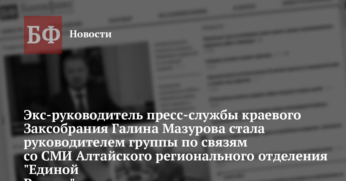 «ЕР» Елизаветы Гундариной и пресс-секретаря фракции «ЕР» в Алтайском Заксобрании Анны Якушевой. Г-жа Мазурова уже принята в штат и приступила к исполнению рабочих обязанностей, но официально ее должность в штатном расписании еще не прописана.