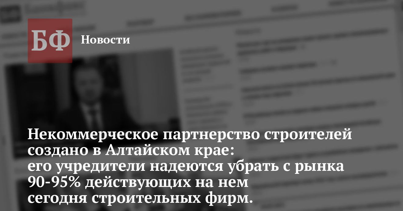 Некоммерческое партнерство строителей зарегистрировано в Алтайском крае, сообщил 17 сентября агентству «Интерфакс-Сибирь»