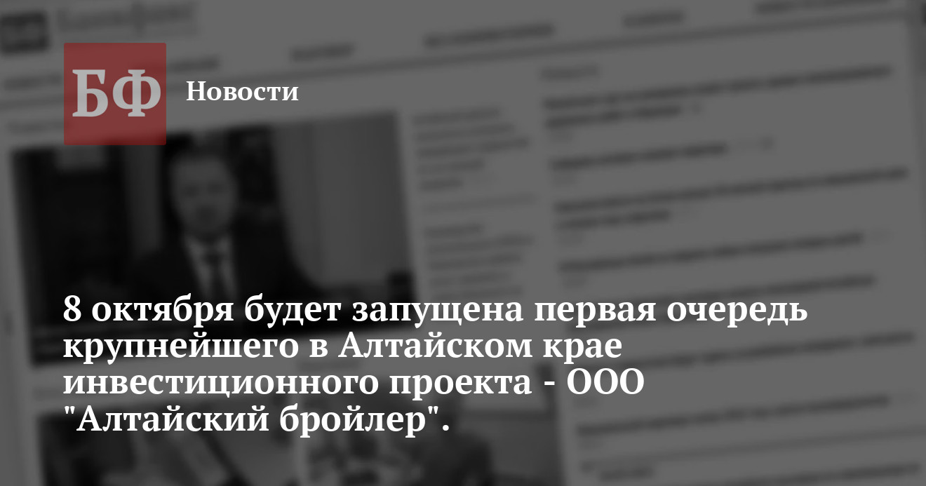 8 октября будет запущена первая очередь крупнейшего в Алтайском крае инвестиционного проекта — ООО «Алтайский бройлер».