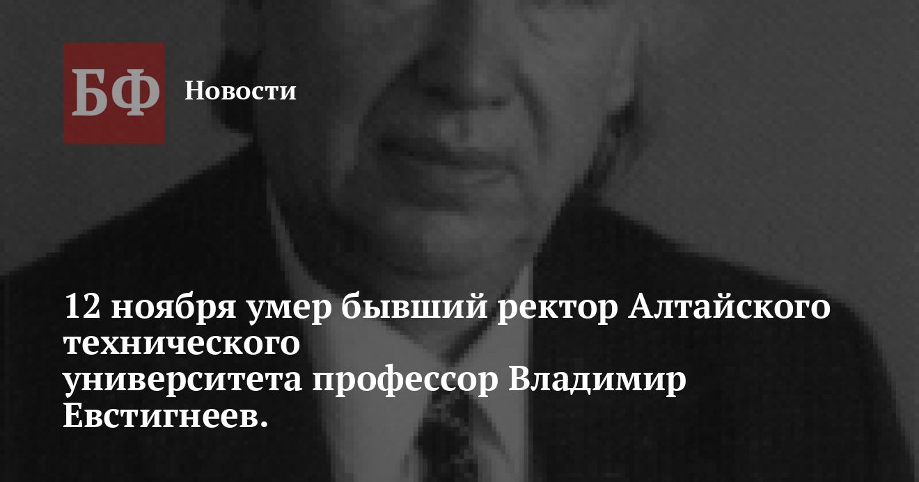 Справка: Владимир Евстигнеев родился 24 мая 1937 года в Москве. В 1961 году окончил с отличием Томский политехнический институт по специальности «инженер-физик», в 1967 году защитил кандидатскую диссертацию в Томске, в 1983 — докторскую диссертацию в МИФИ в Москве, получил звание профессора. Возглавлял АлтГТУ с 1987 по 2007 год. В 2004 году получил звание «Ректор года». Им было подготовлено 26 докторов наук и 42 кандидата технических и физических наук, читал лекции студентам по атомным реакторам и специальной физике. За годы его пребывания в должности ректора число студентов увеличилось с 9600 до 26000 человек, количество аспирантов с 24 до 615, в докторантуре, в 2007 году обучалось 36 человек. Открыты новые современные специальности и направления подготовки кадров. Организовал издание единственного в крае журнала «Ползуновский вестник», входящего в перечень центральных научных изданий, и являлся его главным редактором. Являлся президентом Алтайского научного центра Международной академии наук высшей школы, членом многих отраслевых академий. С 1999 года возглавил консорциум «Вузы Алтая» по президентской программе подготовки управленческих кадров в регионе. Более 10 лет был председателем Совета ректоров вузов Алтайского края и возглавлял координационный Совет по высшей школе Межрегиональной Ассоциации «Сибирское соглашение».