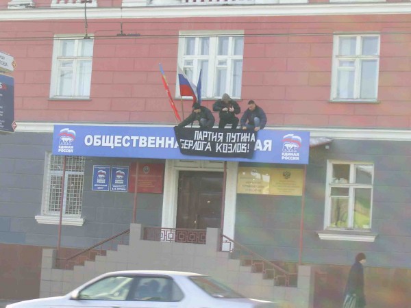 козлов!», зажгли файеры и раскидали листовки антиединоросовского