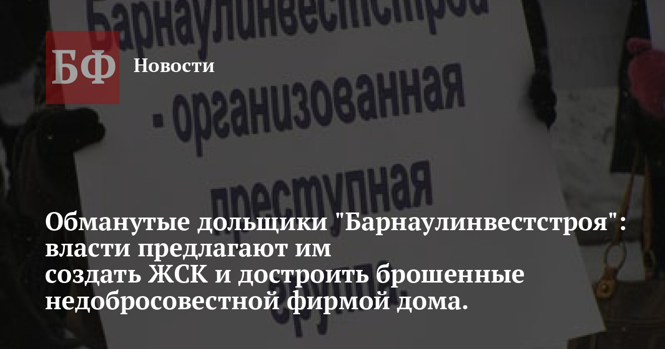 Обманутые дольщики «Барнаулинвестстроя»: власти предлагают им создать ЖСК и достроить брошенные недобросовестной фирмой дома.