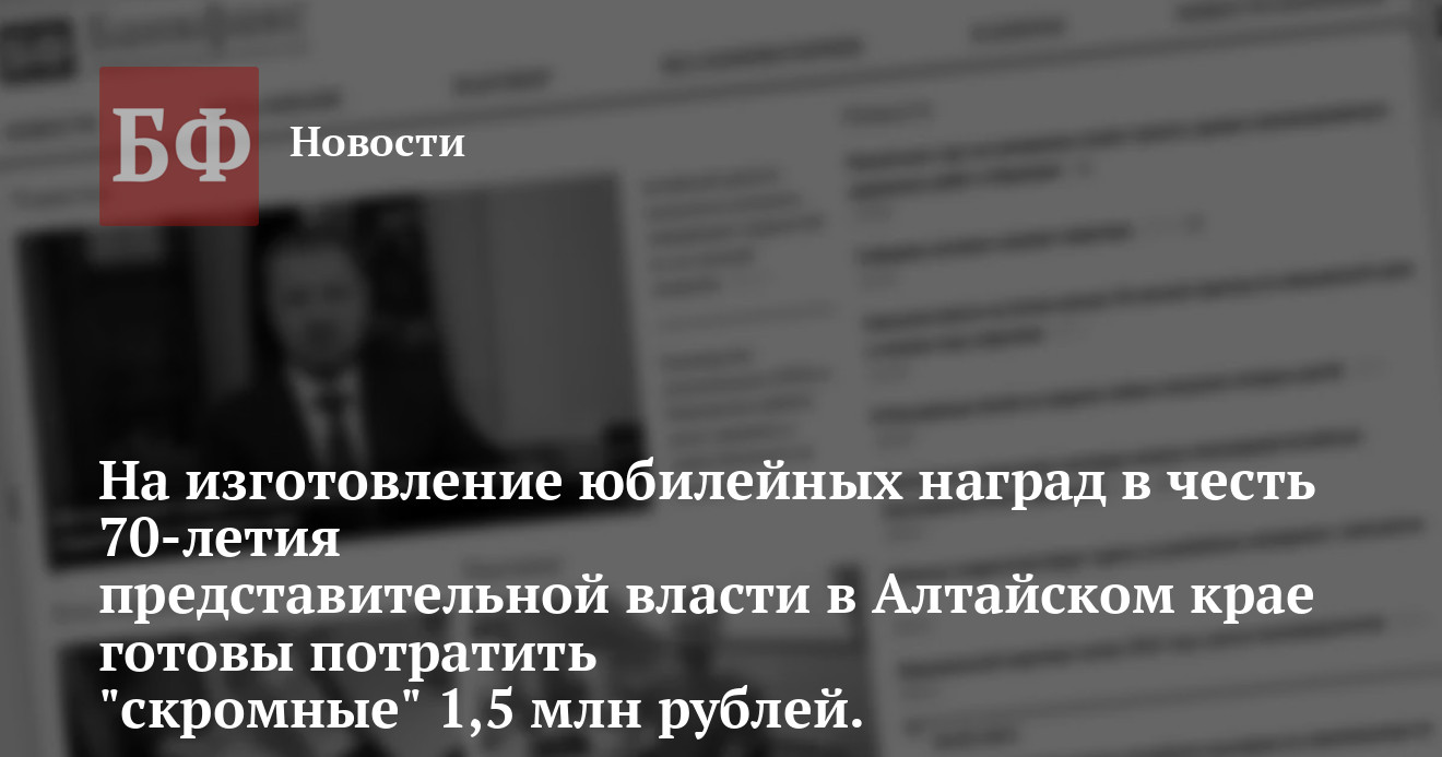 посвященных 70-летию представительной власти на Алтае. На изготовление юбилейных наград региональные власти готовый