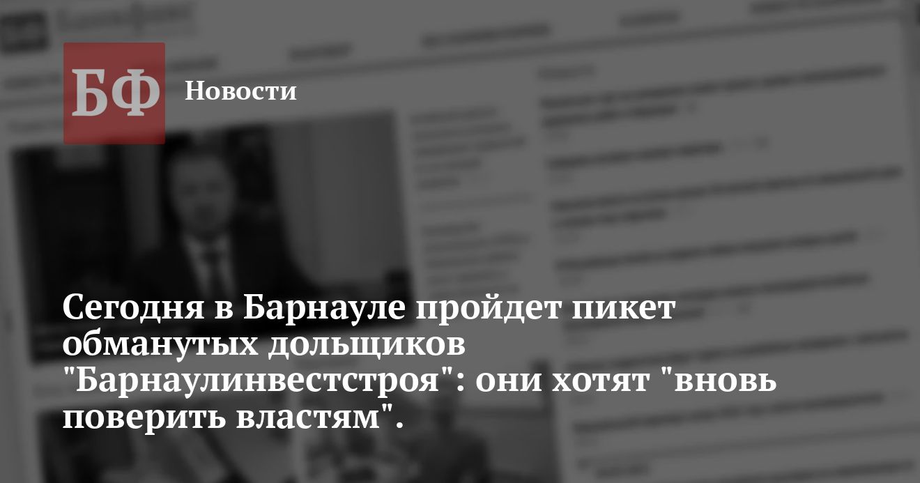Пикет обманутых дольщиков «Барнаулинвестстроя» пройдет 10 марта с 14:00 до 15:00 в Барнауле на площади у ДК «Трансмаш».