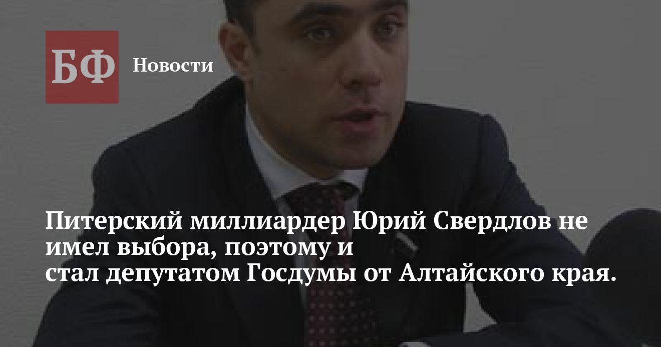 Питерский миллиардер Юрий Свердлов не имел выбора, поэтому и стал депутатом Госдумы от Алтайского края.