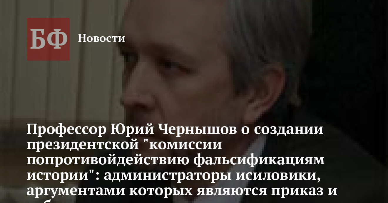 Профессор Юрий Чернышов о создании президентской «комиссии попротивойдействию фальсификациям истории»: администраторы исиловики, аргументами которых являются приказ и дубинка, недолжны указывать профессиональным историкам…