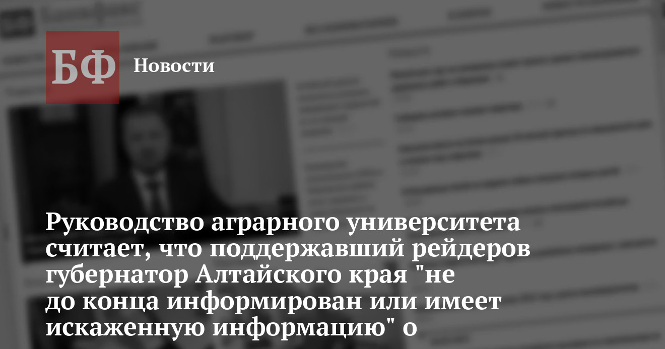 Руководство аграрного университета считает, что поддержавший рейдеров губернатор Алтайского края «не до конца информирован или имеет искаженную информацию» о положении дел в вузе.