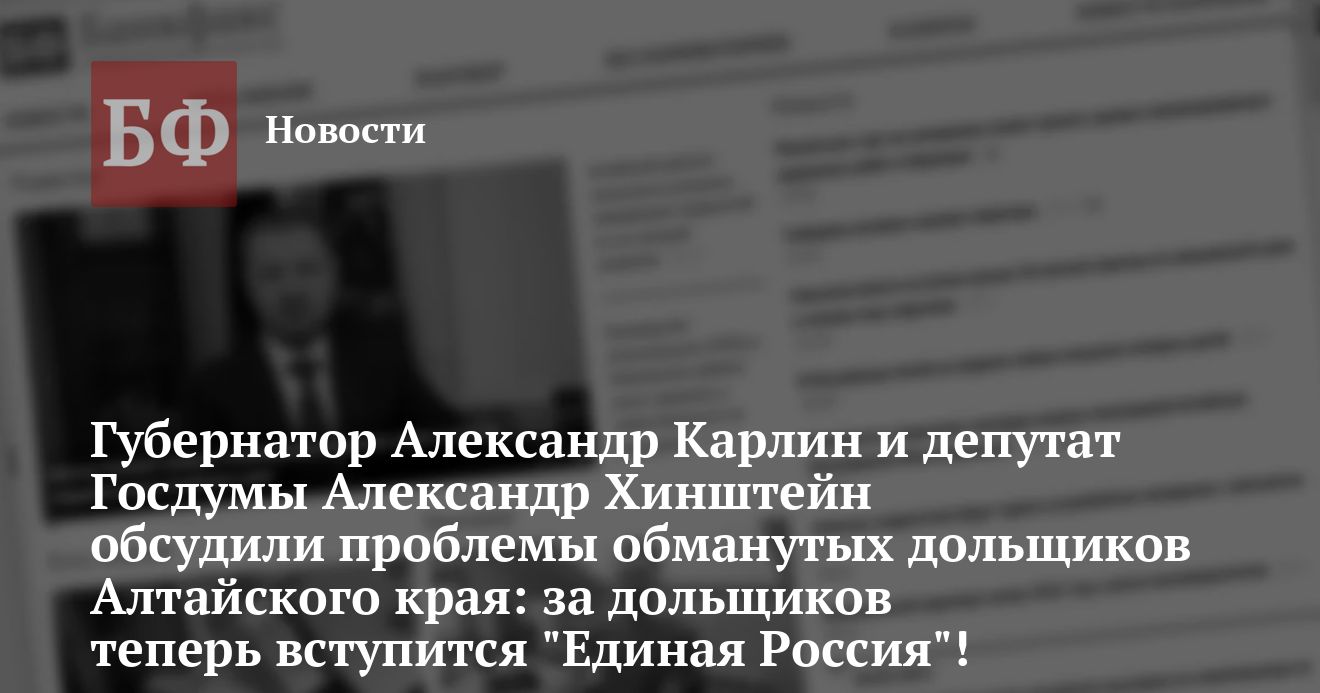 вкладчиков и дольщиков Александр Хинштейн и губернатор Александр