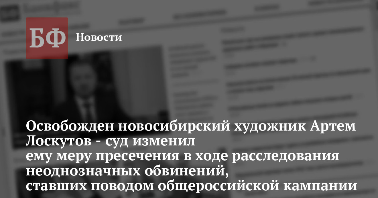 Освобожден новосибирский художник Артем Лоскутов — суд изменил ему меру пресечения в ходе расследования неоднозначных обвинений, ставших поводом общероссийской кампании протеста.