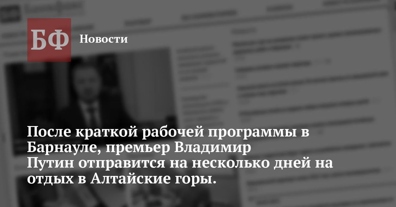 После краткой рабочей программы в Барнауле, премьер Владимир Путин отправится на несколько дней на отдых в Алтайские горы.